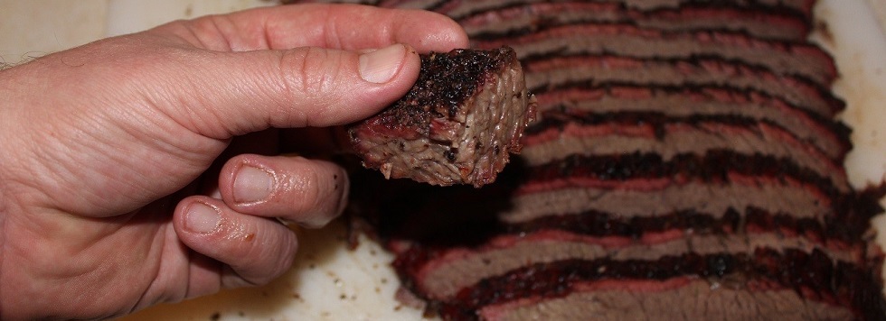 Buy 12lb Choice packer briskets that are kind of flexible and have a straight grain line. The straight grain line helps keep the final cutting of the meat easier; the grain doesn’t drift and the knife adjustments are kept to a minimum.
